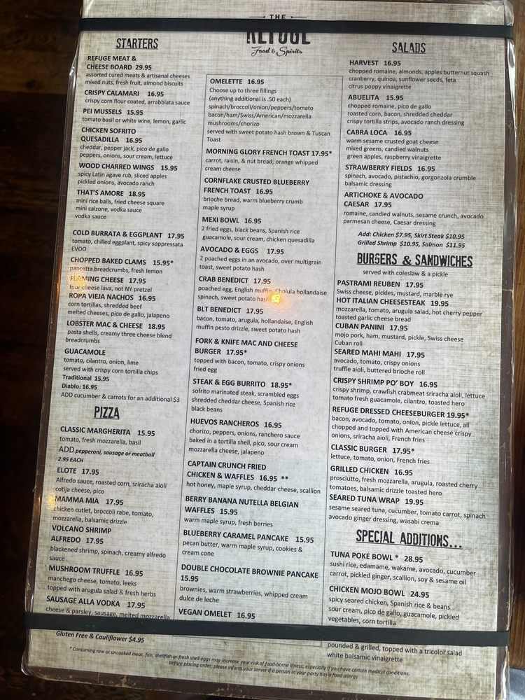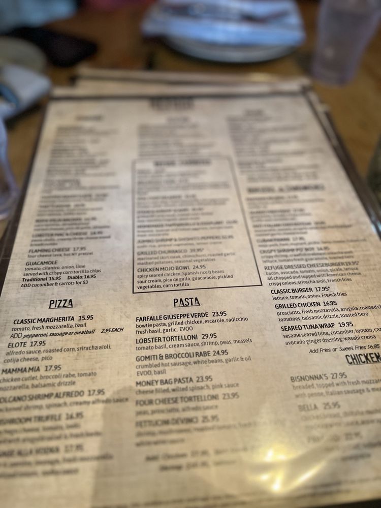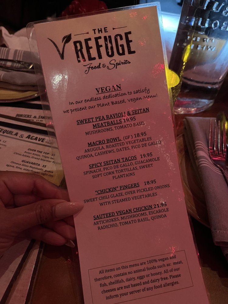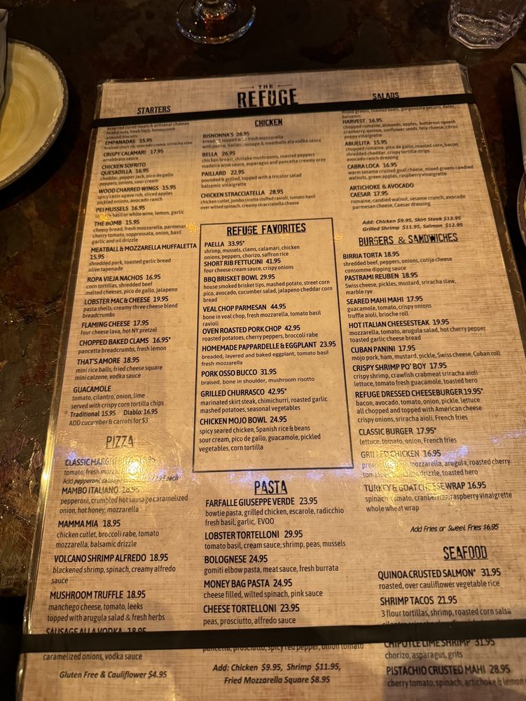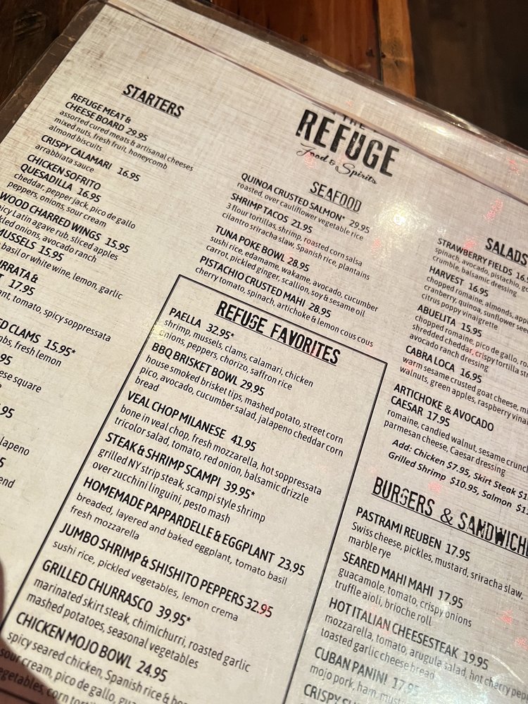 "The Refuge" is a trendy restaurant in Melville, NY, offering a diverse menu with vegan and vegetarian options. They provide a comfortable dining experience with wheelchair access, valet parking, and gender-neutral restrooms. The starters feature a variety of unique dishes like grilled Spanish octopus and crispy calamari. Their salads, such as the Nonna Salad and Abuelita Salad, are flavorful and refreshing. Sandwich options like the Seared Mahi Mahi and Grilled Chicken are a hit among customers. The reviews praise the delicious food, excellent service, and vibrant ambiance, perfect for a date night or gathering with friends. Overall, "The Refuge" provides a memorable dining experience with carefully crafted dishes and a welcoming atmosphere.